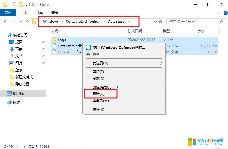 2、在里面我們找到并且打開名為“DataStore”的文件夾,將里面的所有文件和文件夾全部刪除掉。
